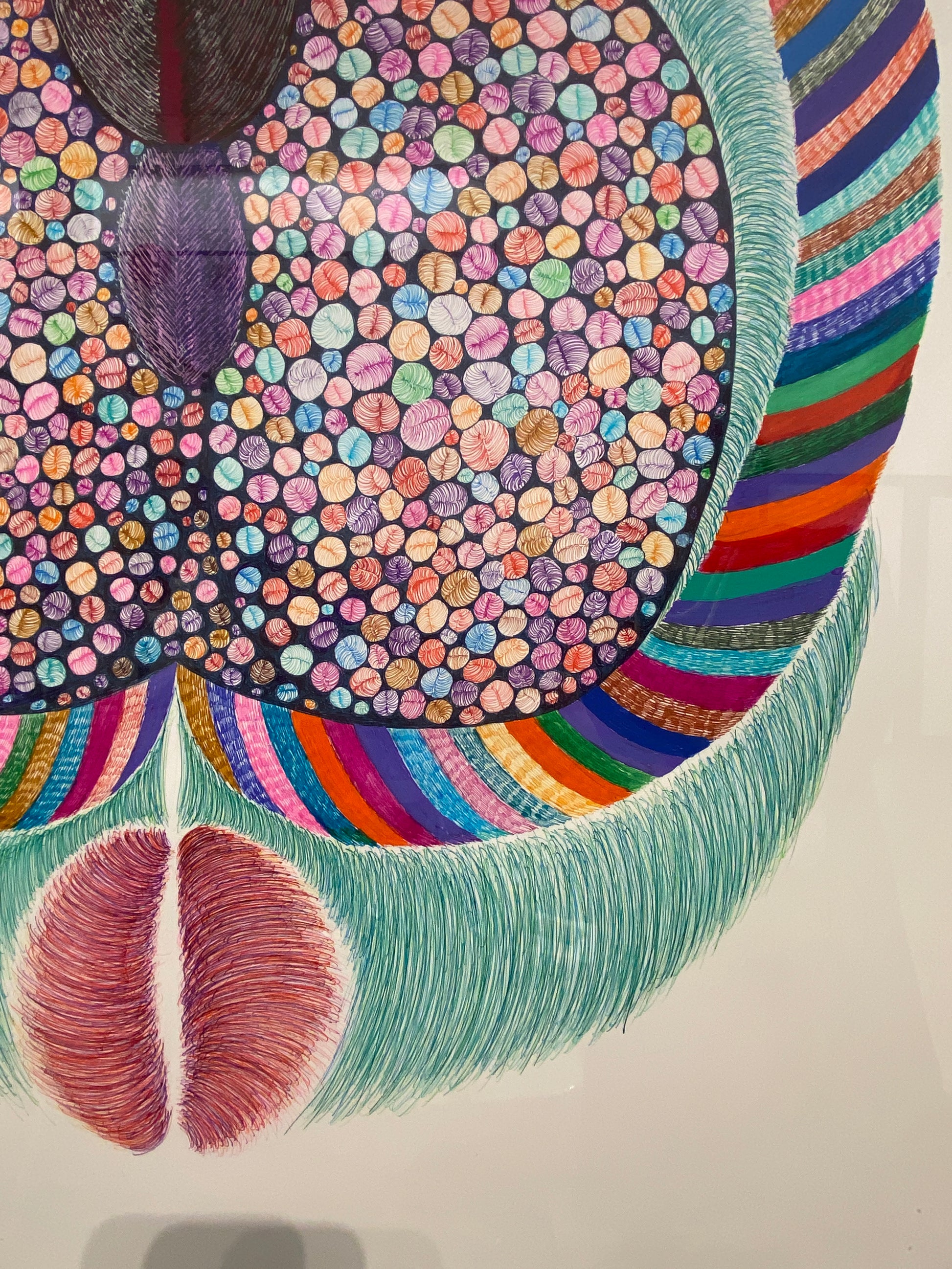 "My practice explores the intersection of pattern with nature, geometry and craft. Images are borrowed and imagined from other cultures and biomorphic forms and expressed through mark making.