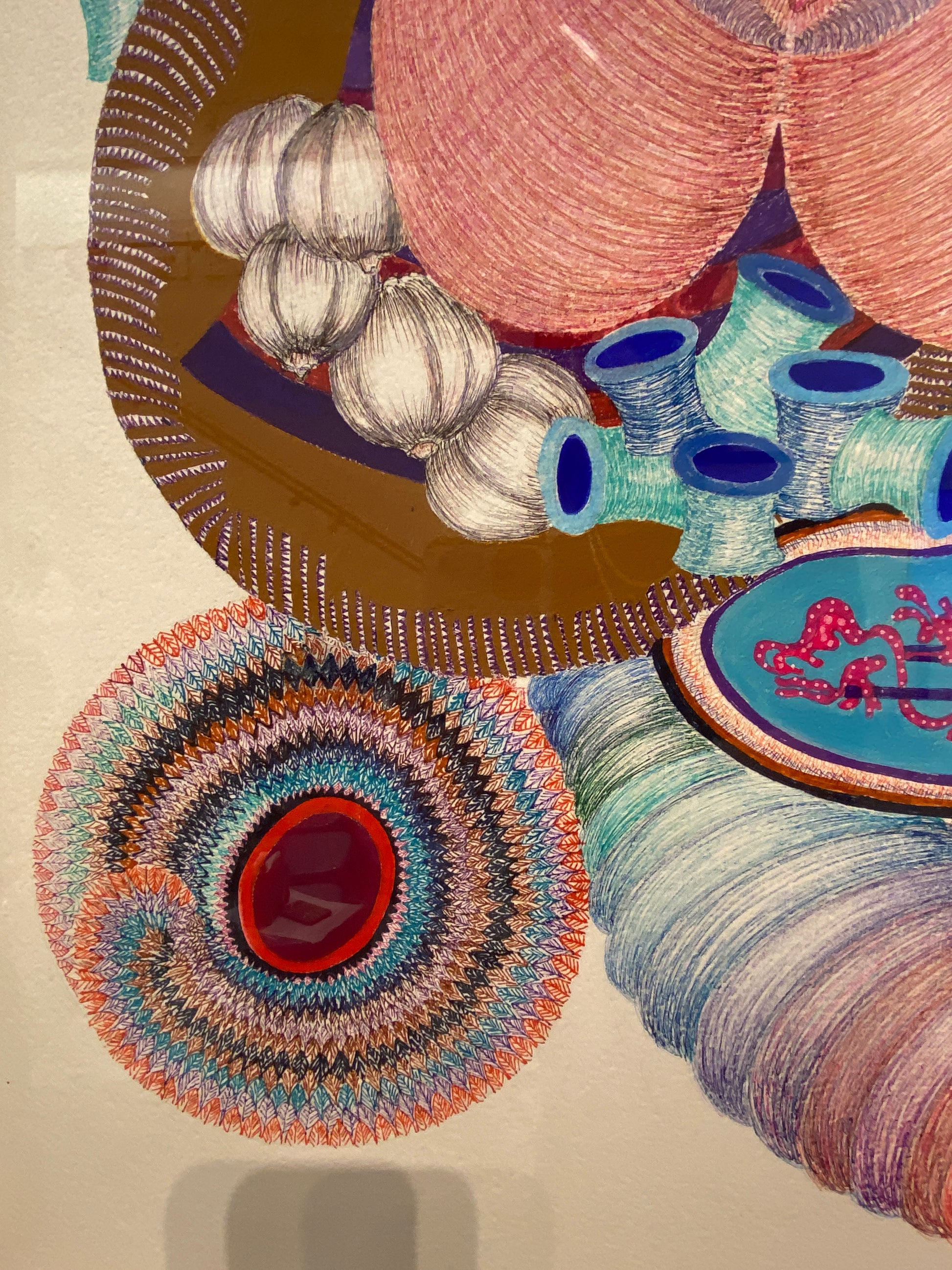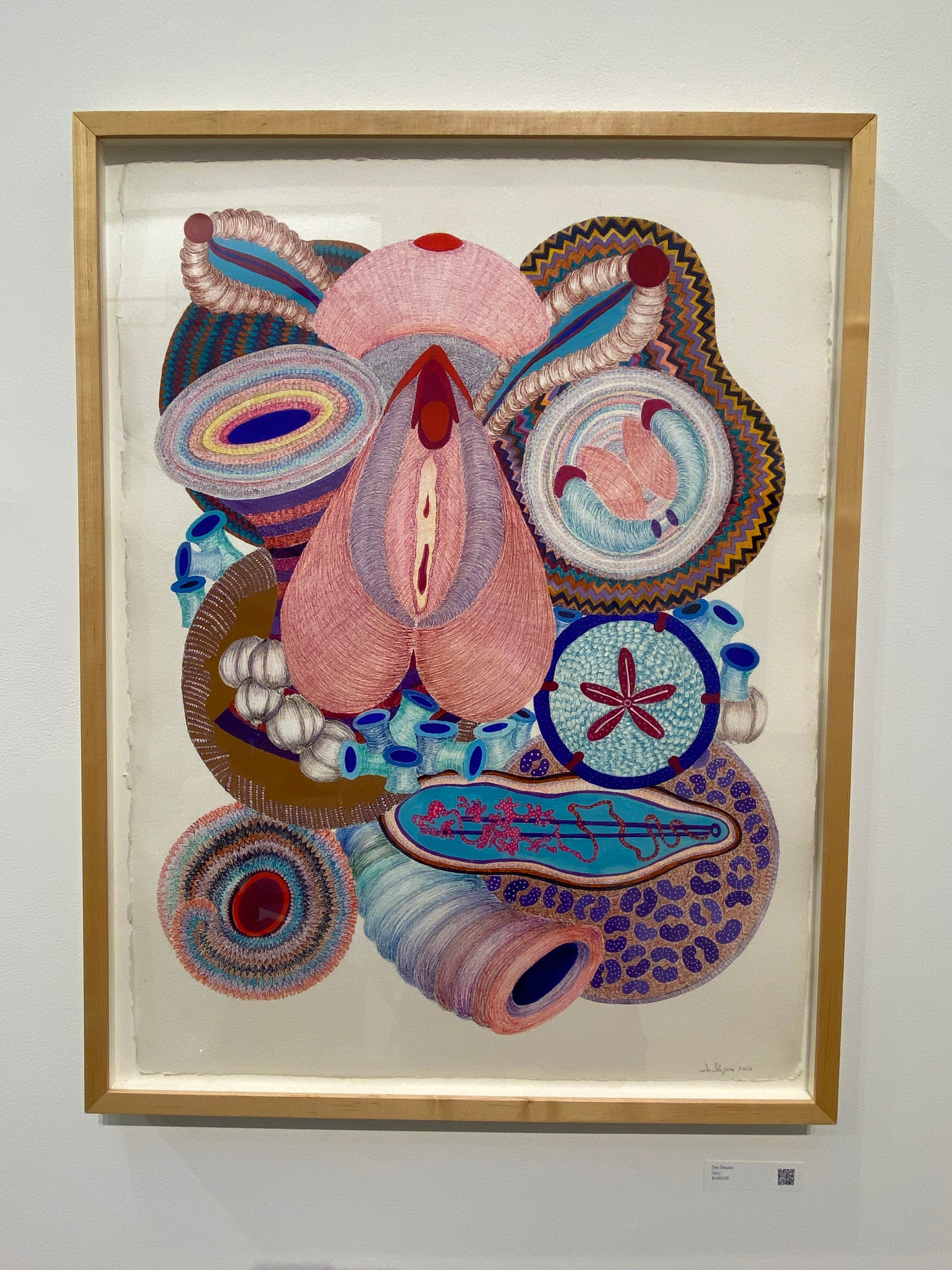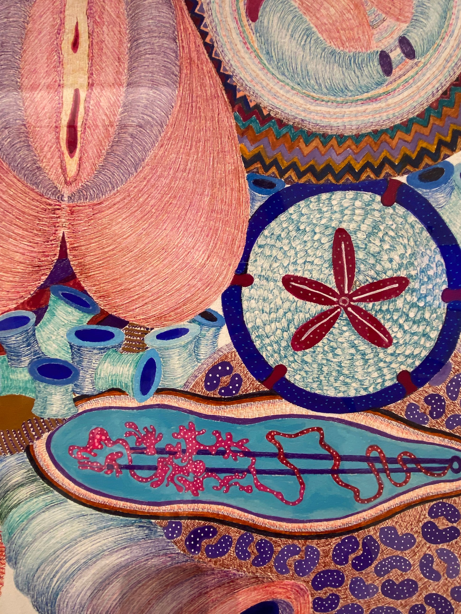 "My practice explores the intersection of pattern with nature, geometry and craft. Images are borrowed and imagined from other cultures and biomorphic forms and expressed through mark making.