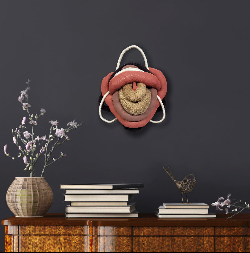 My process often begins with freehand drawing and watercolor painting before turning an image into something more structured and systematic. Creating work through this lens has allowed me to connect my interests in ornamentation, identity politics, and the tension between the natural and man-made that exists within my own body. I use materials and imagery metaphorically, from combining soft fibers with rigid metal wire to portraying the coexisting dualities of sinuous curves supported by lattice. My themes include symmetry and asymmetry, deformity and correction, systems failing, and organic and geometric structures coexisting. My work considers the political nature of the human body what is considered abject.