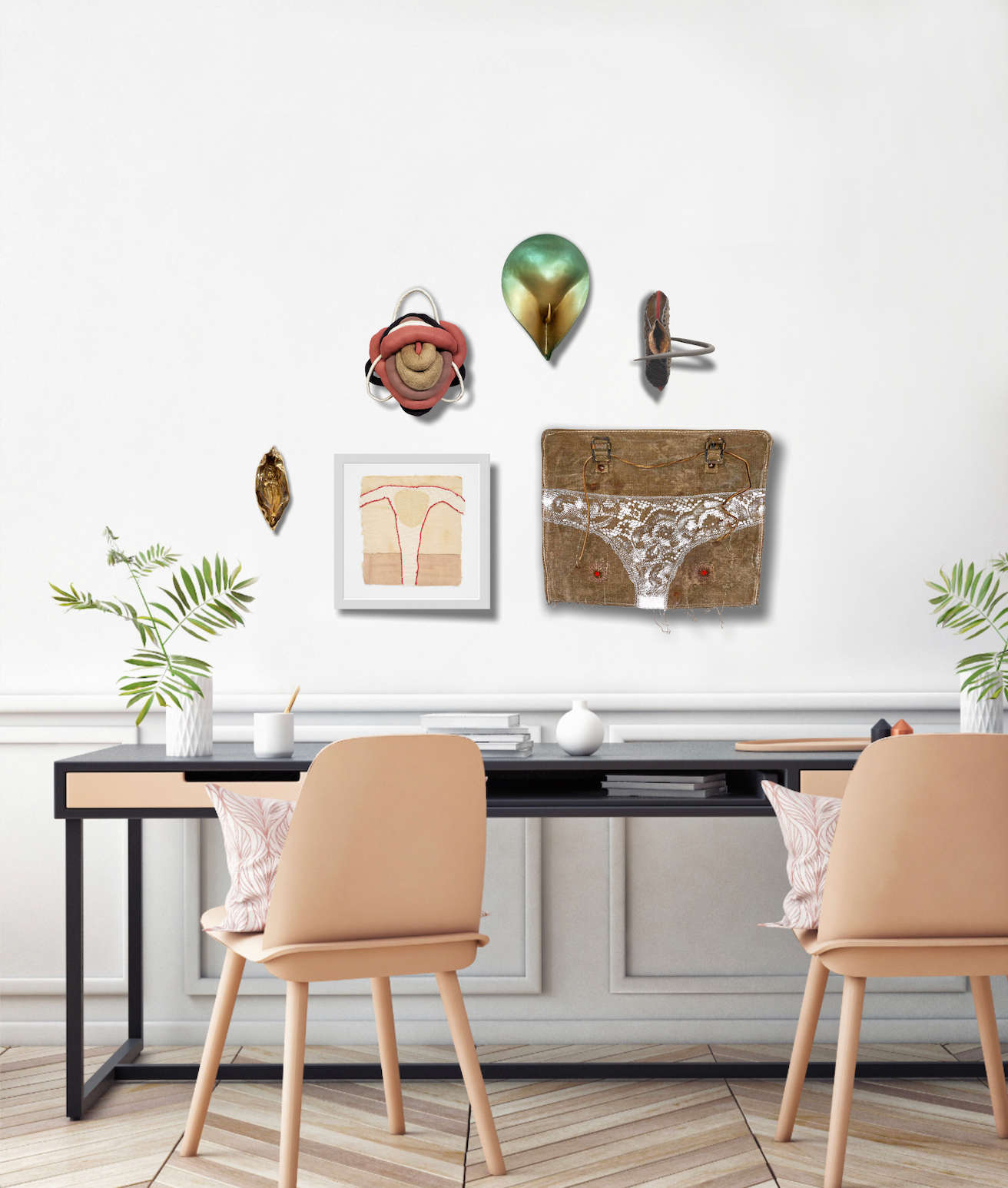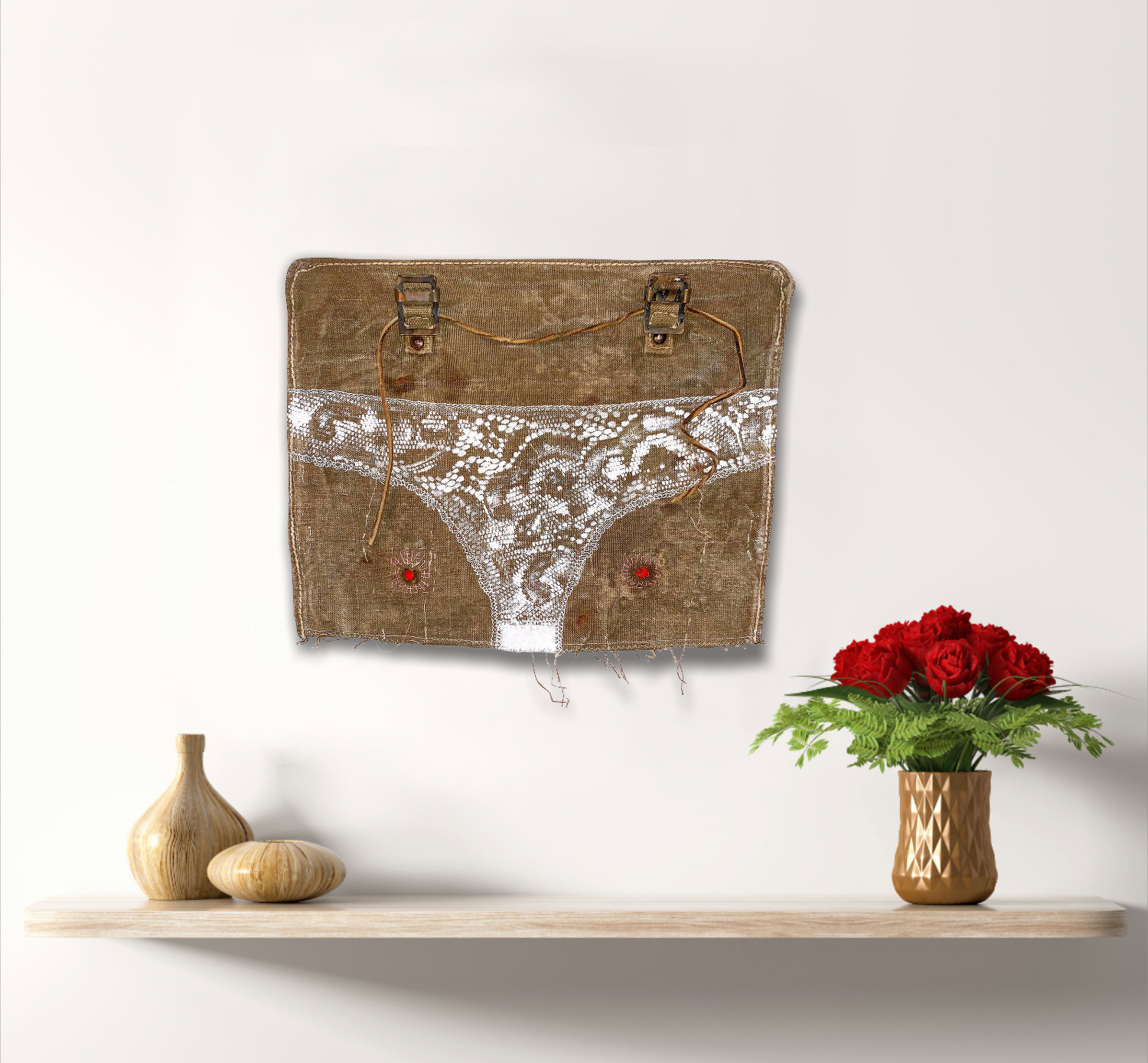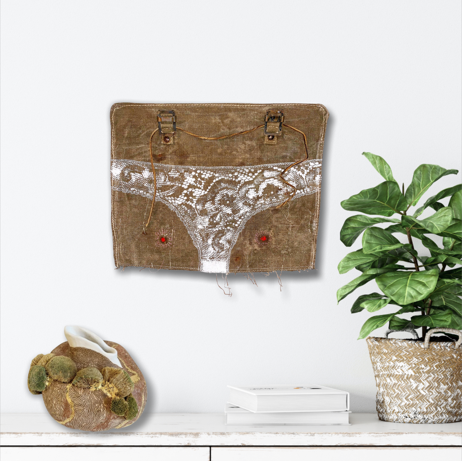 Most of my work is connected with the idea of intimacy, I have strong visions, some in my dreams and some while awake, these visions comes from within me, persist, push and push, until I find the appropriate support mostly made of vintage materials ranging from Japanese textile to US military canvases, linen, embroideries, papers, woods. I am inspired by eastern philosophical symbology that I re-elaborate and by an imagery from Mediterranean basin that belongs to my culture of origin, often with a spiritual and decorative dimension. I believe I need to express my profound intimacies without actually revealing them, or rather what I would like to reveal with my work is the mystery of intimacy. I exploit nature and animals, feminine energy, and ritualistic objects, symbols which carries magic and mysteries, opposite cultures and religions to recreate in every single piece a small unique parallel universe with a new language that speaks to the collective unconsciousness.